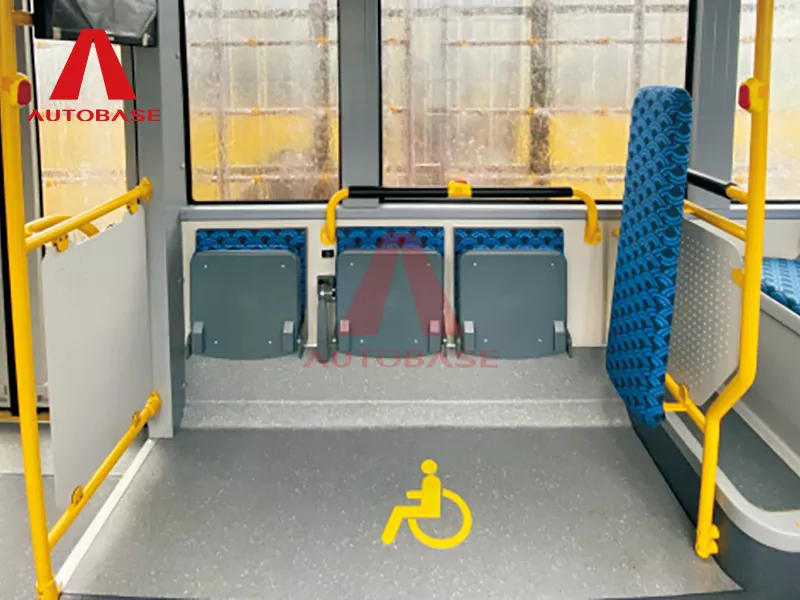 승객 흐름과 접근성이 가장 중요합니다. 10.7m 길이의 순수 전기 버스는 넓은 전면 도어와 중간 도어를 갖추고 있으며 각 도어의 순 너비는 1000mm로 빠르고 손쉬운 탑승을 보장합니다. 중앙 문 앞의 혁신적인 저층 공간은 휠체어와 유모차 사용자를 포함한 모든 사람이 원활하고 계단 없이 접근할 수 있도록 해줍니다. 중앙 도어 뒤에서 내부는 차량의 기술적인 구조를 수용하는 동시에 넓은 느낌을 유지하기 위해 두 개의 부드러운 계단을 통해 전환됩니다.