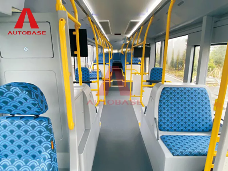 A: 10.7m의 순수 전기 버스는 총 54명의 승객과 1명의 운전자를 수용할 수 있는 고밀도 노선을 위해 설계되었습니다. 25개의 고정 좌석과 4개의 접이식 좌석, 4개의 지정 우선석을 갖추고 있어 유연하게 사용할 수 있습니다. 독특한 하이라이트는 뒷좌석에 통합된 6인승 라운지 공간으로 승객의 편안함을 향상시킵니다.